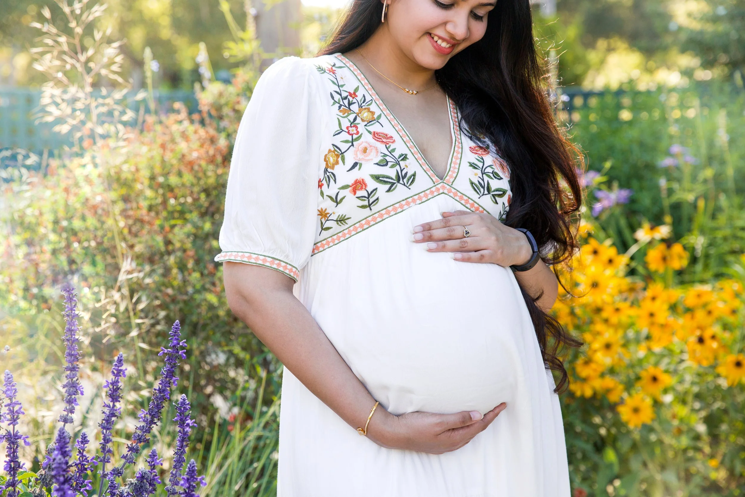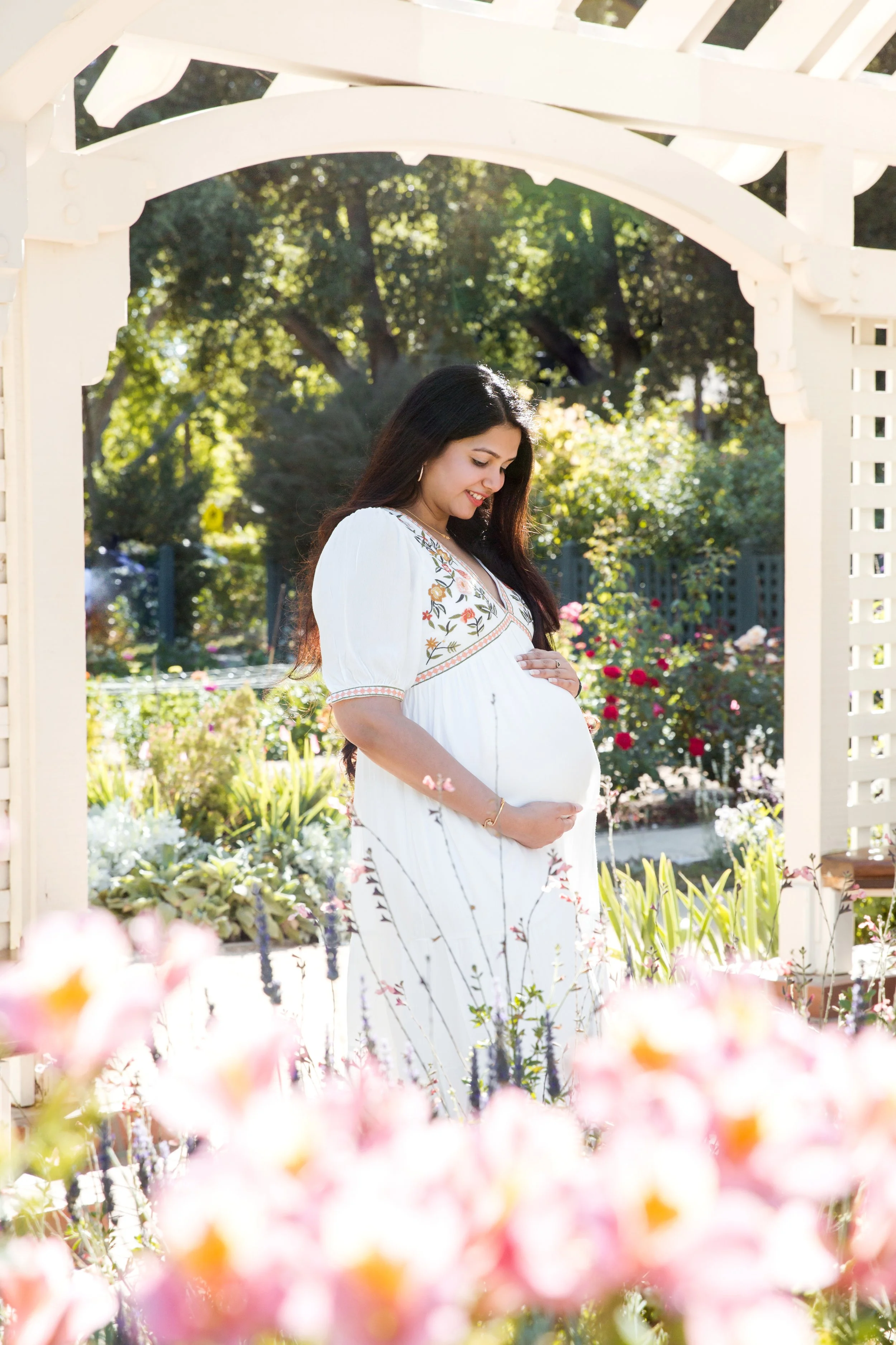 I was really honored, as always, to be choosed to photograph their maternity session. We talked about locations, and they decided to go with The Elizabeth F. Gamble Garden in Palo Alto. We talked about what outfits would look better for the session and Sunanda end up choosing a beautiful white long dress that made her and her tummy glow.